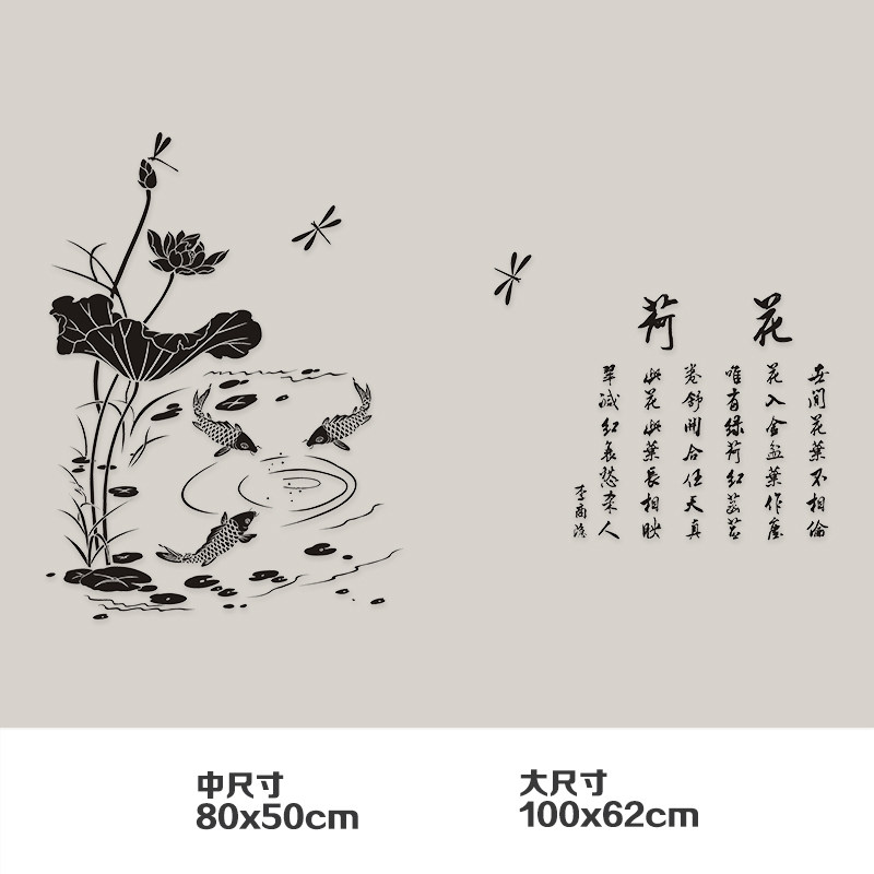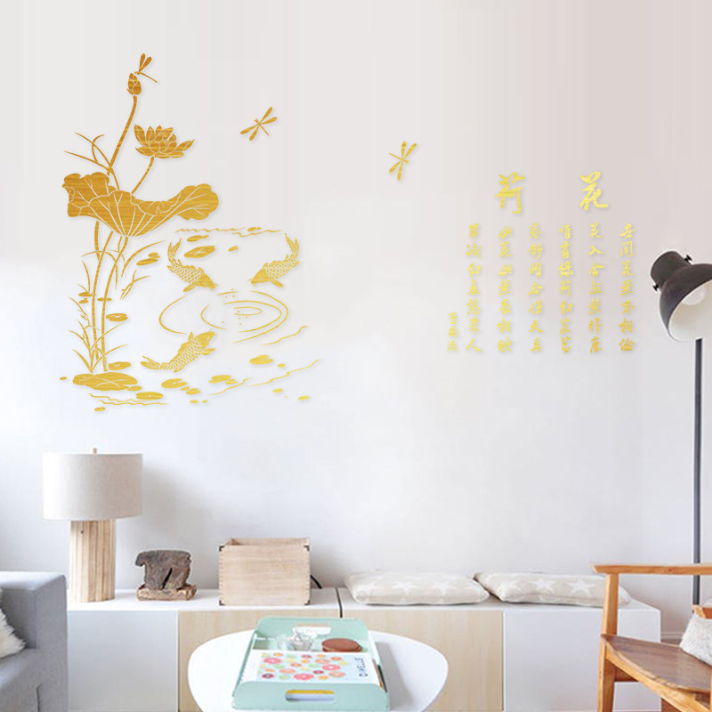 Water moon mirror lotus wall Living room dining room bedroom wall decoration stickers Chinese style entrance wall stickers