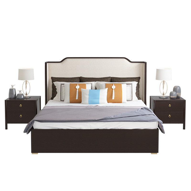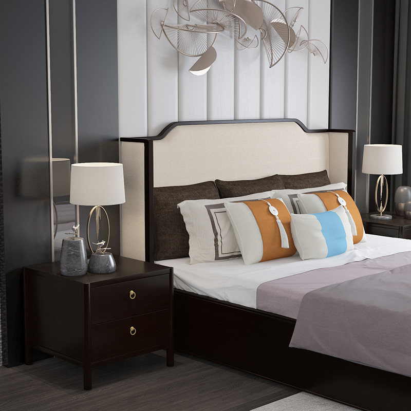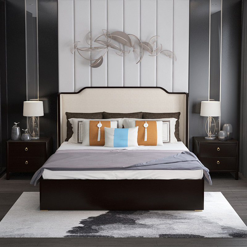 New Chinese solid wood bed 1 8m Double beds modern simple minimalist light lavish style bedroom Zen master bedroom 1 5m wedding bed-Taobao