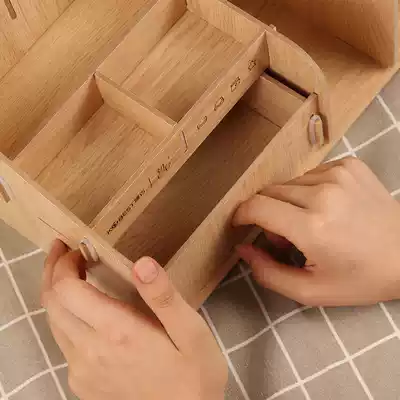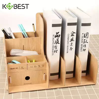 Kangbai File frame data rack erect three columns File frame wooden table simple bookshelf storage box pen holder drawer
