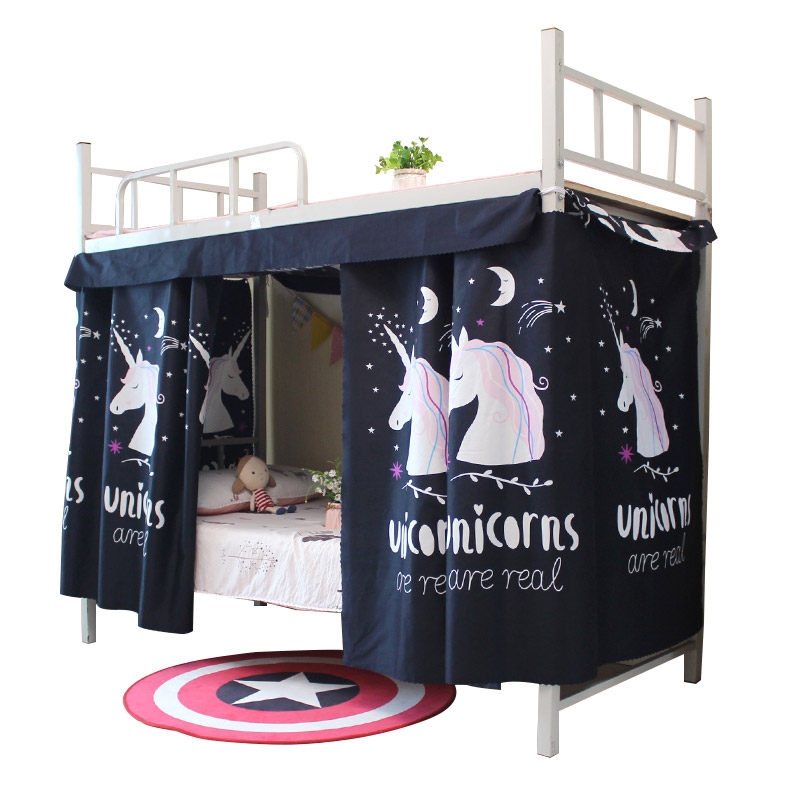 Two pieces of extra-top bed curtains University dormitory tent upper bunk and lower bunk with dust-proof top blue Korean style minimalist style