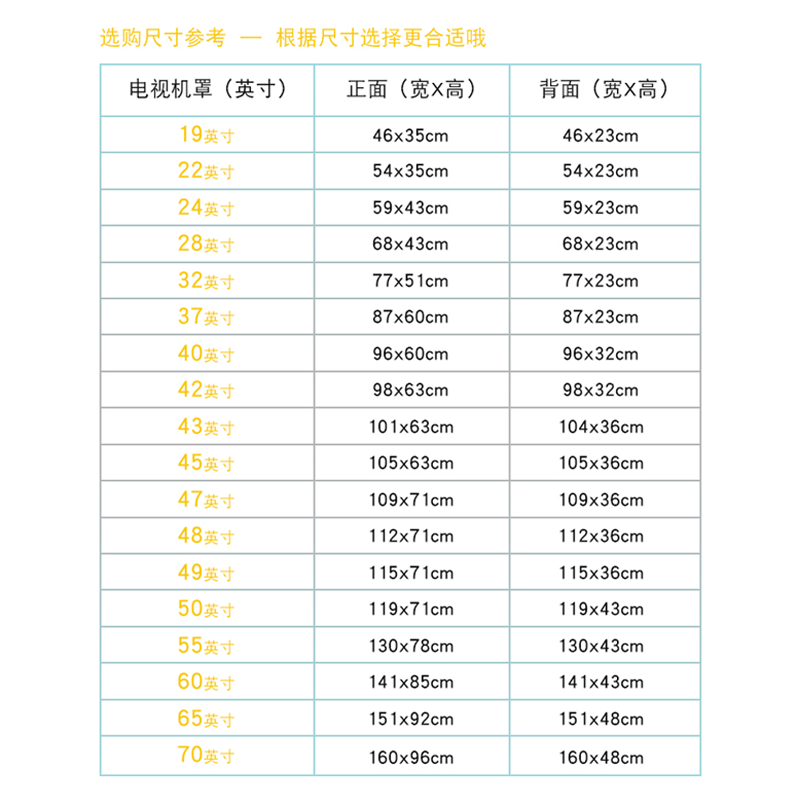 32 inches 42 inches 50 inches 55 inches 60 inches 65 inches 70 inches