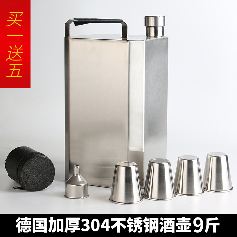 Thickened 304 stainless steel hip flask personality opposite sex 7kg 9kg wine bottle household liquor barrel oil flask portable belt