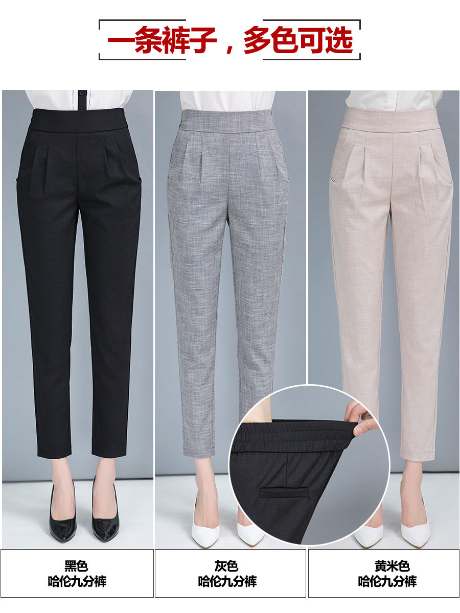 2021 new cotton and hemp haroon pants women's summer thin nine-point pants ice silk high waist thin slim loose casual pants women