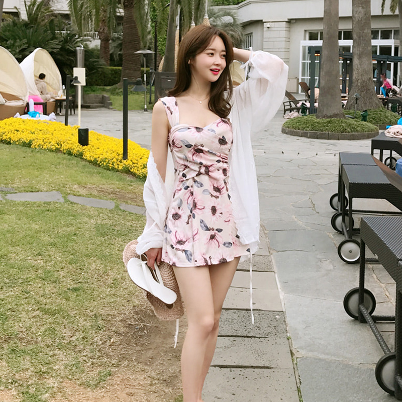 Swimsuit female fairy fan Korea ins wind two-piece skirt sexy two-piece set thin cover belly conservative seaside jumpsuit