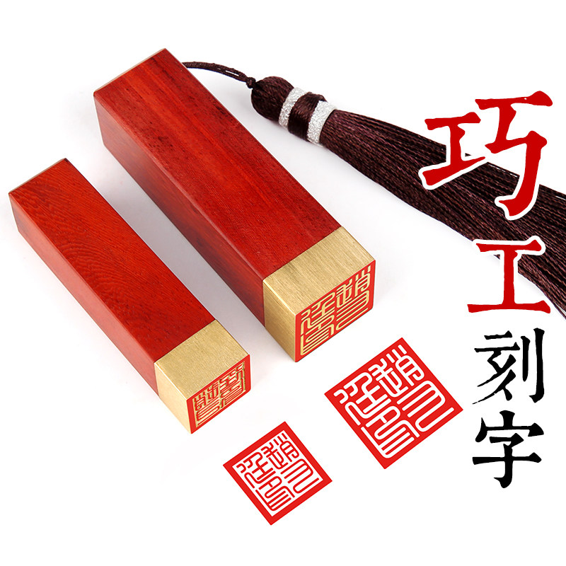 Personal Name Seal Making Full Brass Red Koolulu Wood Carving Seal Set Up Hard Pen Calligraphy Seal Body Private Zhang Customized Children Students Use Print Fire Lacquer Writing Brush Tibetan Calligraphy Gift Bag Lettering