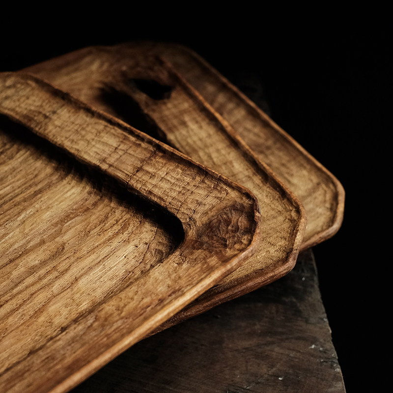 Hop-on research material Round tea tray solid wood noodle handmade Japanese flower plate old maple tea tea