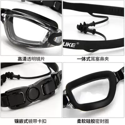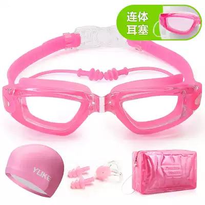 Transparent black swimming goggles-with earplugs transparent powder swimming goggles-with one-piece earplugs to understand swimming goggles-with one-piece earplugs transparent black non-myopia 3-piece set of transparent powder not myopia 3-piece set