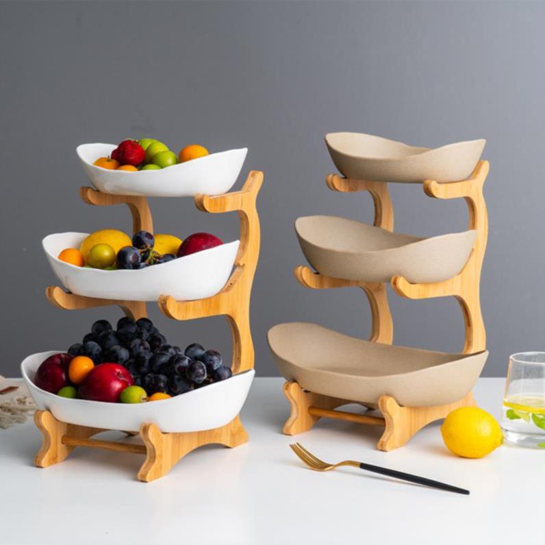 Irregular double layer of fruit tray (porcelain) irregular double-layered fruit tray (Tao) Three layers of porcelain with three layers