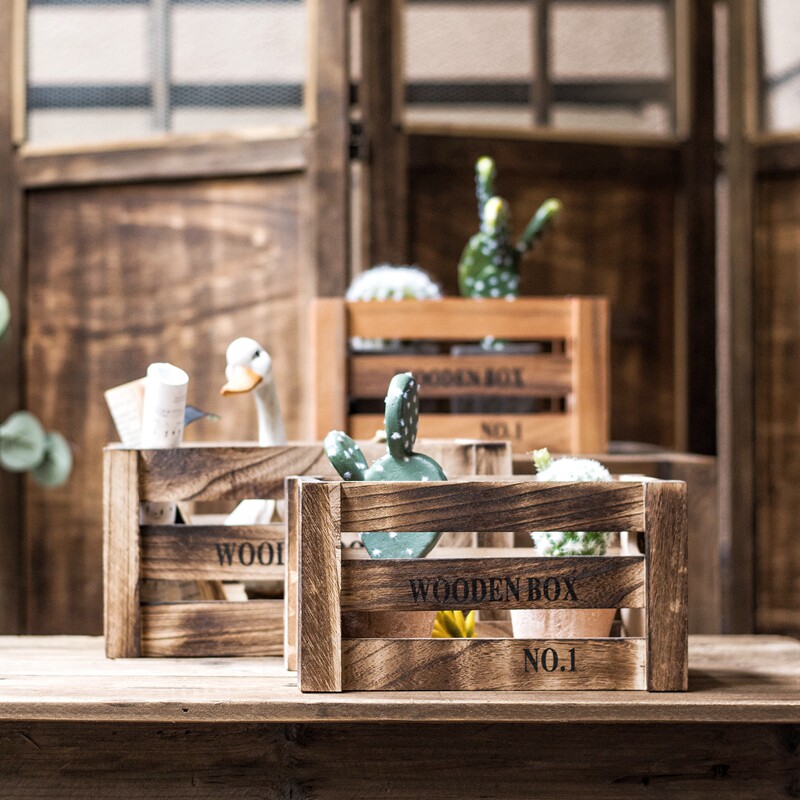 JK Mmu Space Log Containing Box Wood Strips Box Combined Retro Containing to make old garden shop windows Display decorative props