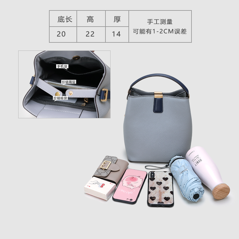 2023 New Bucket Bag Genuine Leather Head Layer Bull Leather Fashion Trends 100 Lap Single Shoulder Inclined Satchel Bag-Taobao