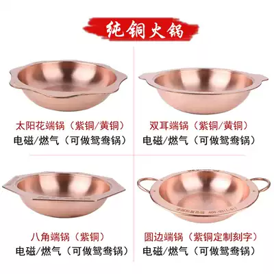 Pure Copper Basin Hot Pot Pot induction cooker purple copper pot Jiugongge hot pot child mother Mandarin duck pot commercial clear soup pot three grid Pot Pot