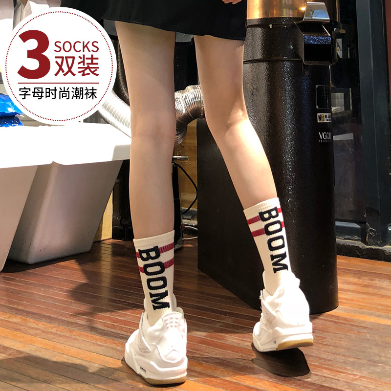 Spring Spring Autumn Socks Women Midbarrel Socks Chains Chains 100 lapped Korean net red with long high Help High waist Han version of outside wearing spring