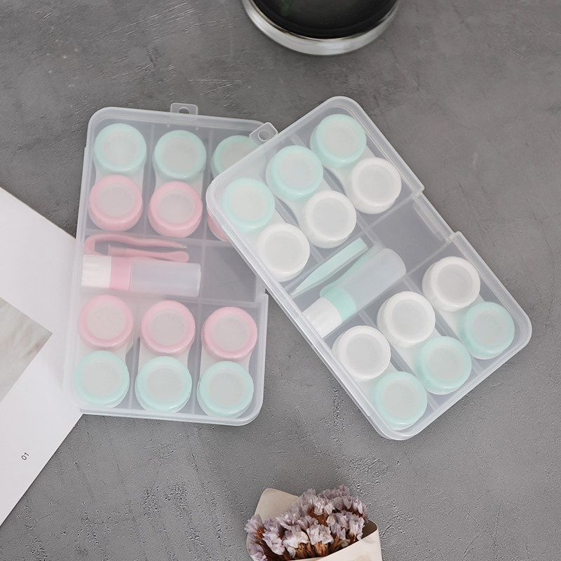 Six pairs of double contact lens case cleaning myopia care transparent beauty pupil companion box simple storage box care box