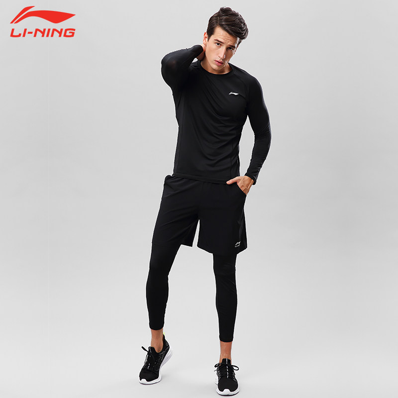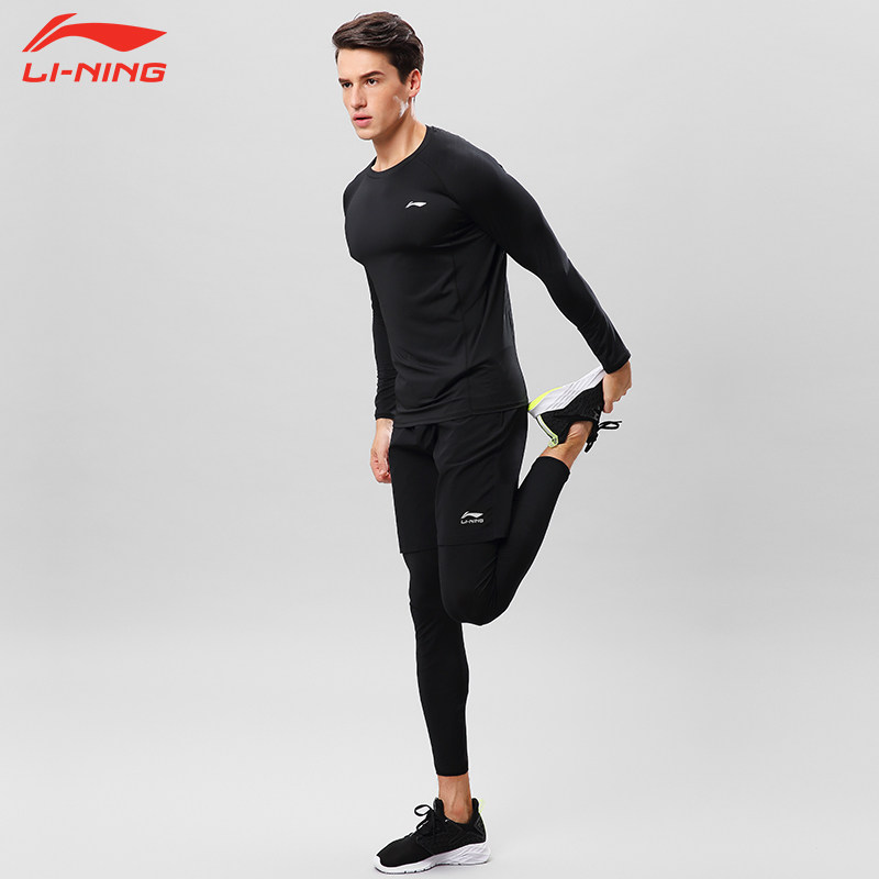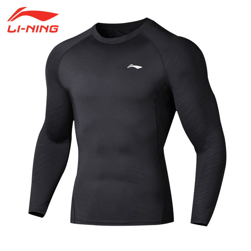 Li Ning tights men's long-sleeved quick-drying sports T-shirt fitness clothes line iron running top high elastic AUDP073