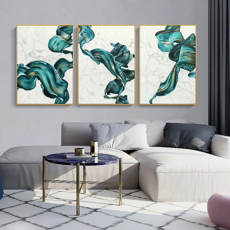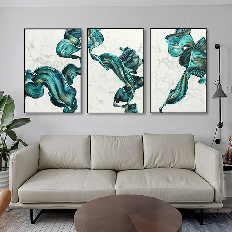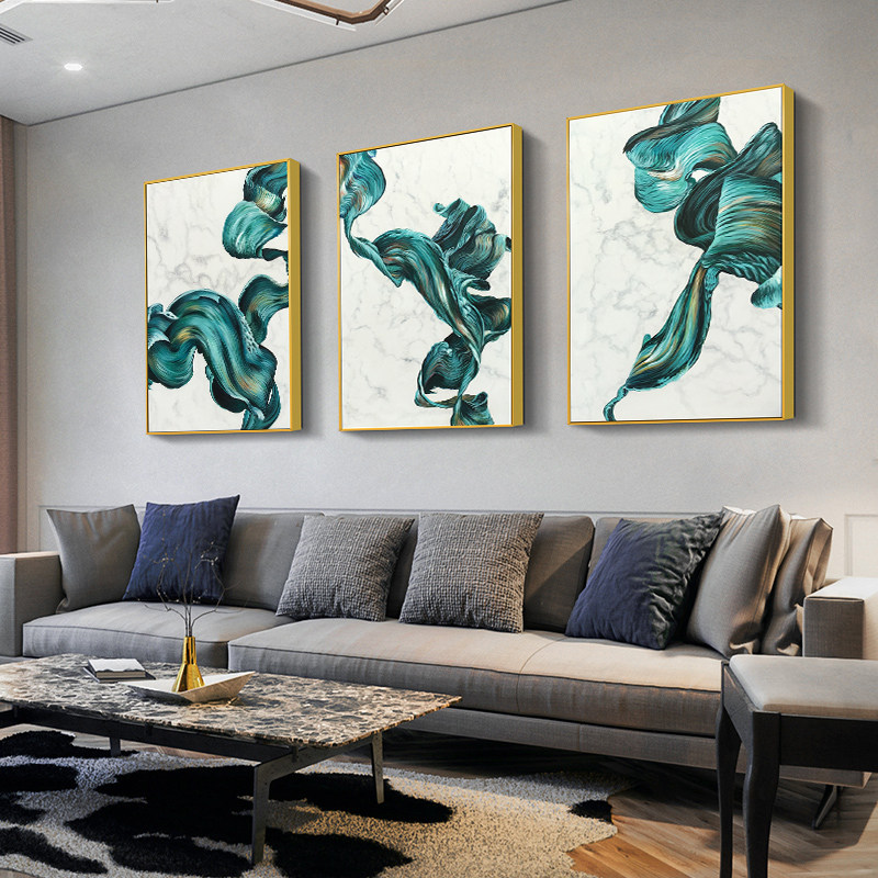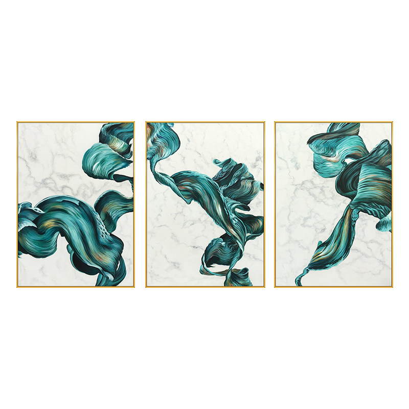 Hand painted oil painting living room triple decoration painting abstract color Northern European style sample room masonry hanging painting life