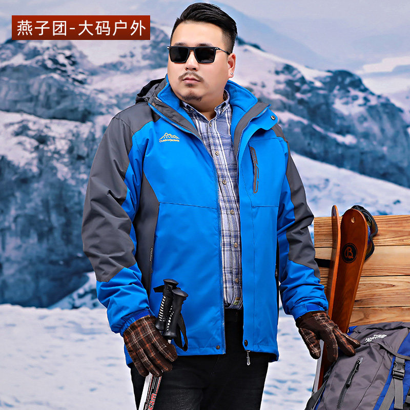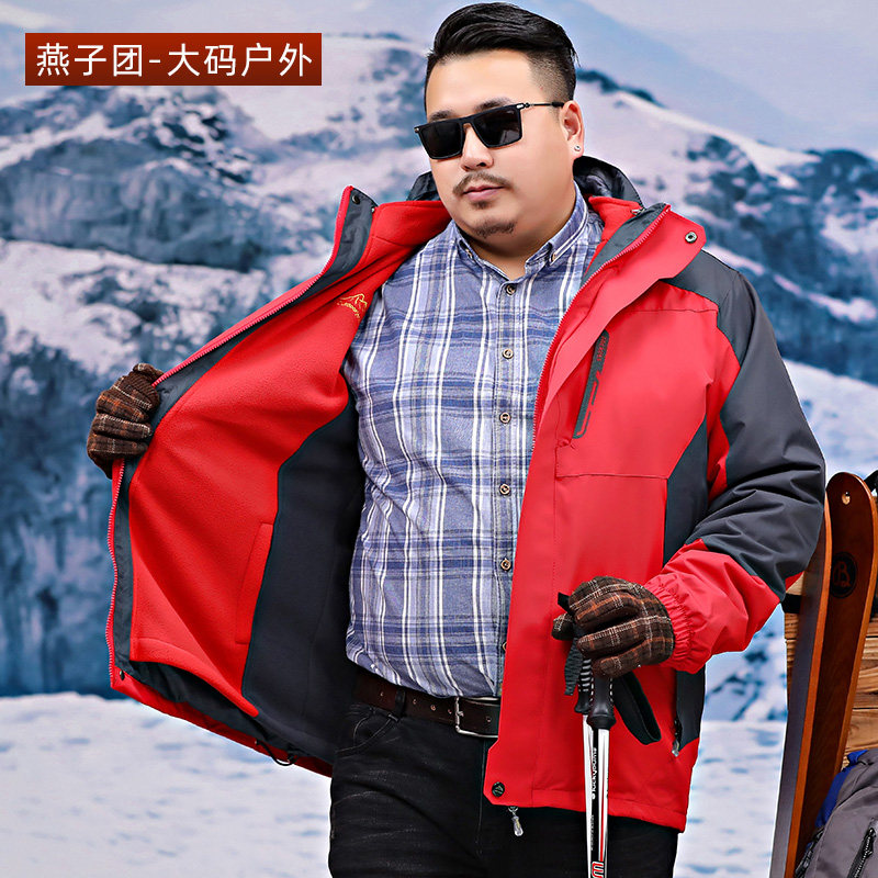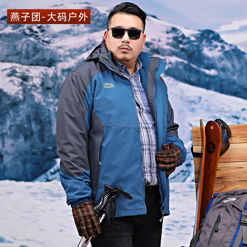 Outdoor large size size plus suede thickened two-piece removable autumn/winter submachine clothing male three-in-one windproof and waterproof jacket man
