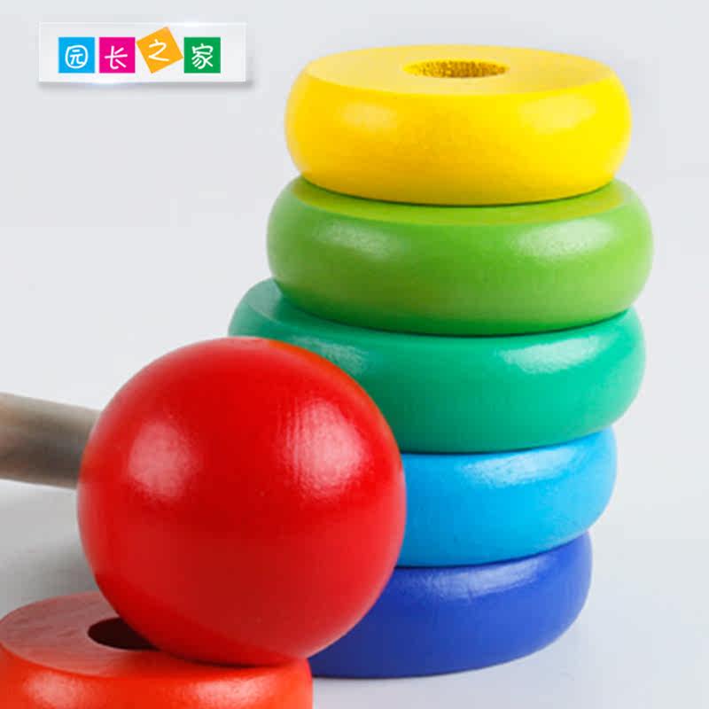 Solid Wood Quality Infant Child Early Learning Wisdom Development Seven Color Stacks Rainbow Tower Kindergarten Families Toddlers Toys