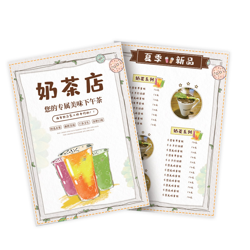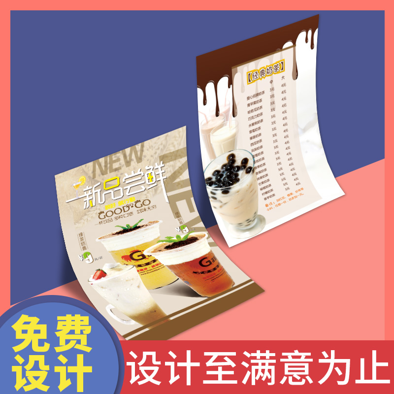 Milk tea shop flyer printing drink opening advertisement flyer double-sided color page design and production ice drink delivery dm single page custom printing tea drink coffee shop cold drink trial opening tri-fold printing