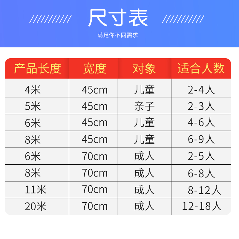 Children's models 4 meters 2-4 people] Children's models 6 meters 4-6 people] Children's models 8 meters 6-9 people] Adult models 6 meters 2-5 people] Adult models 8 meters 6-8 people] Adult models 11 meters 8 -12