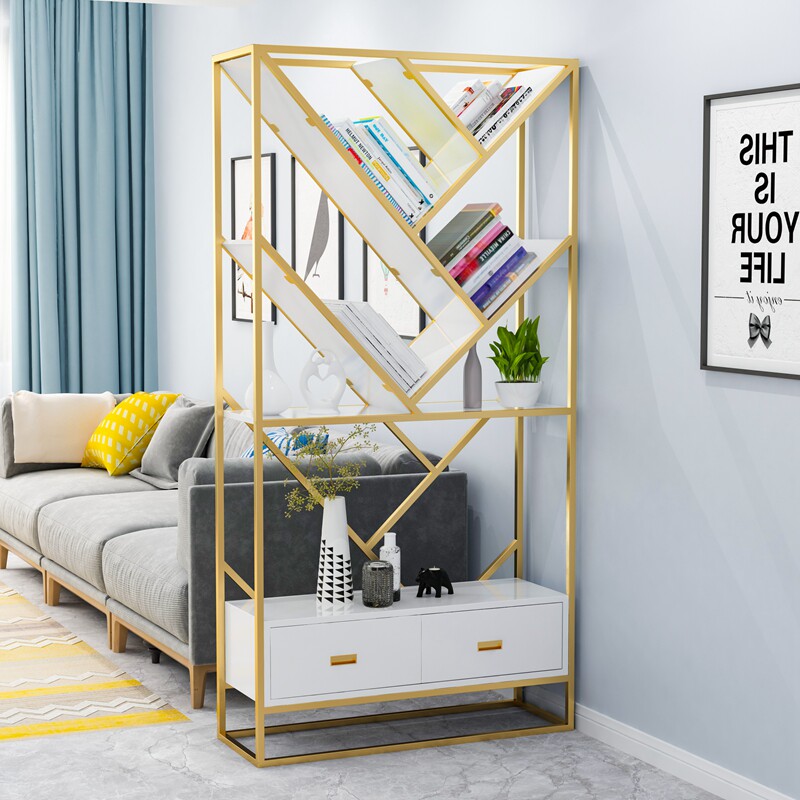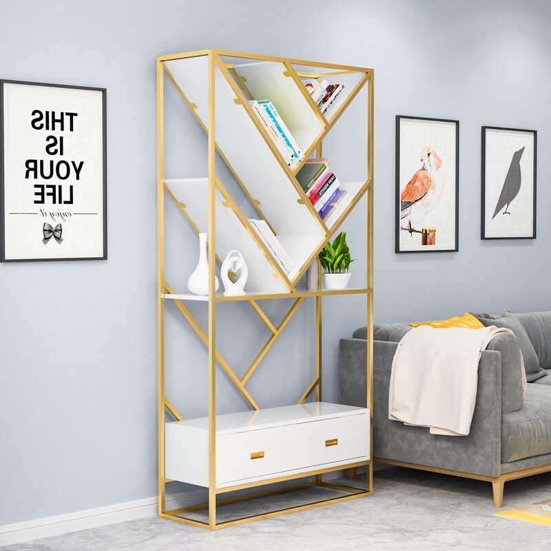 Iron Art Shelf Living Room Partition Wall Corner Multilayer Floor Landing Partition Cabinet Bedroom Containing Cabinet Office Iron Art Bookshelf