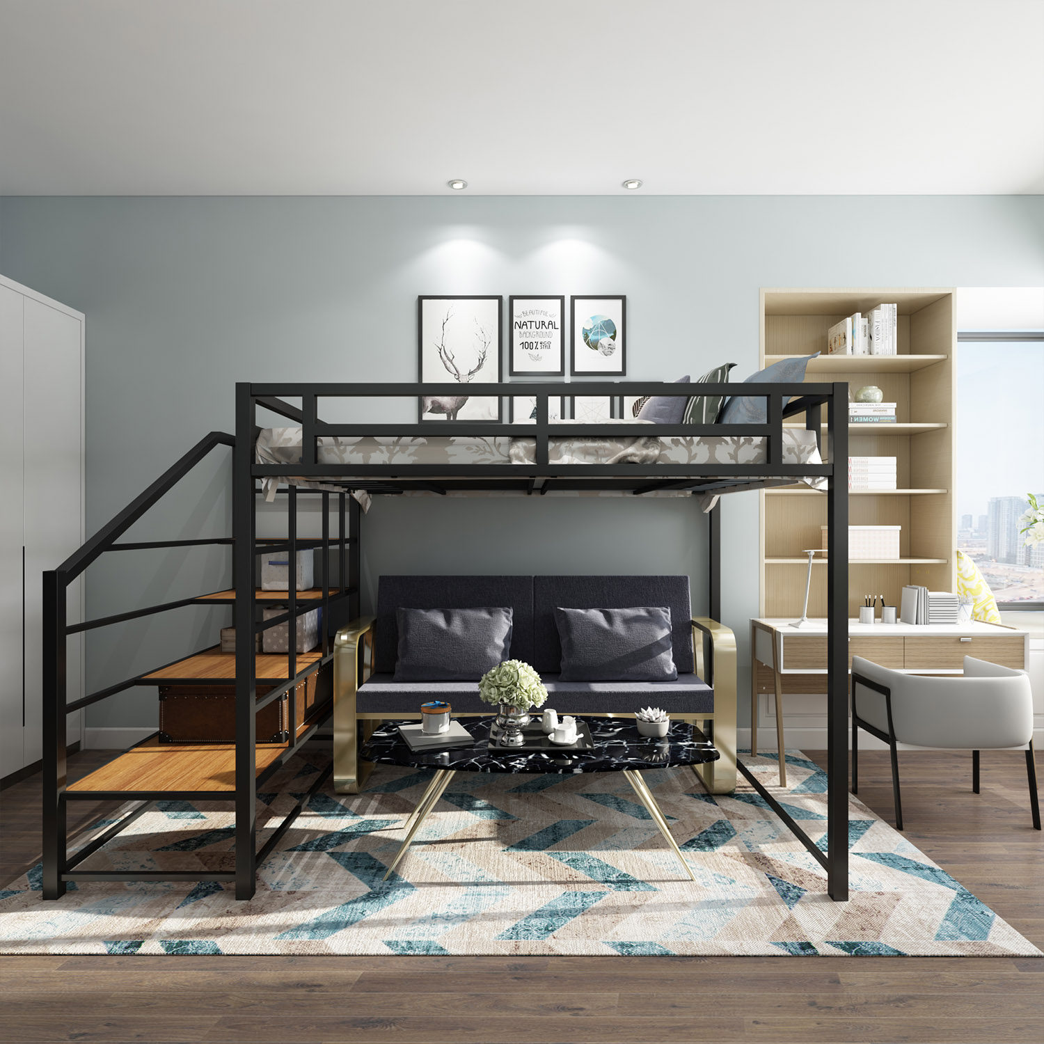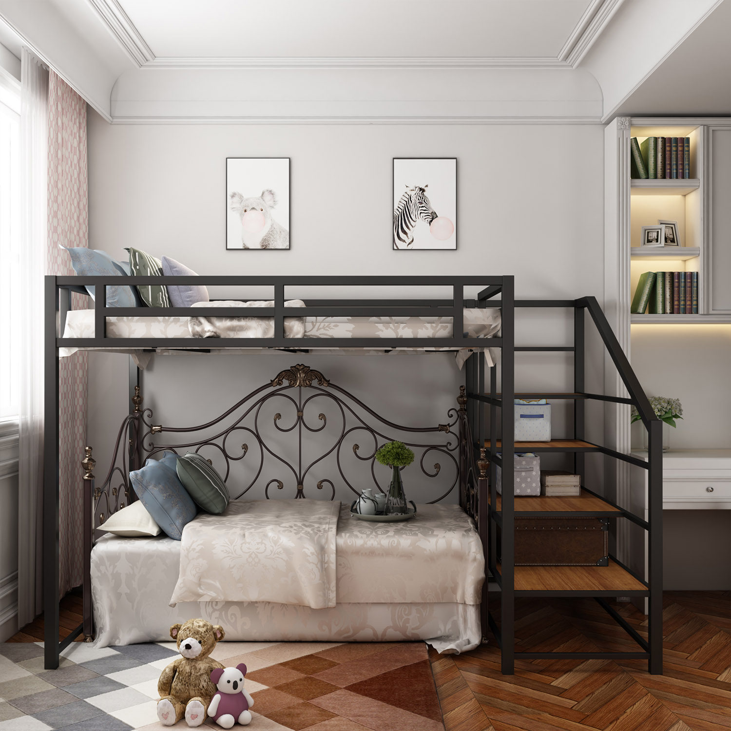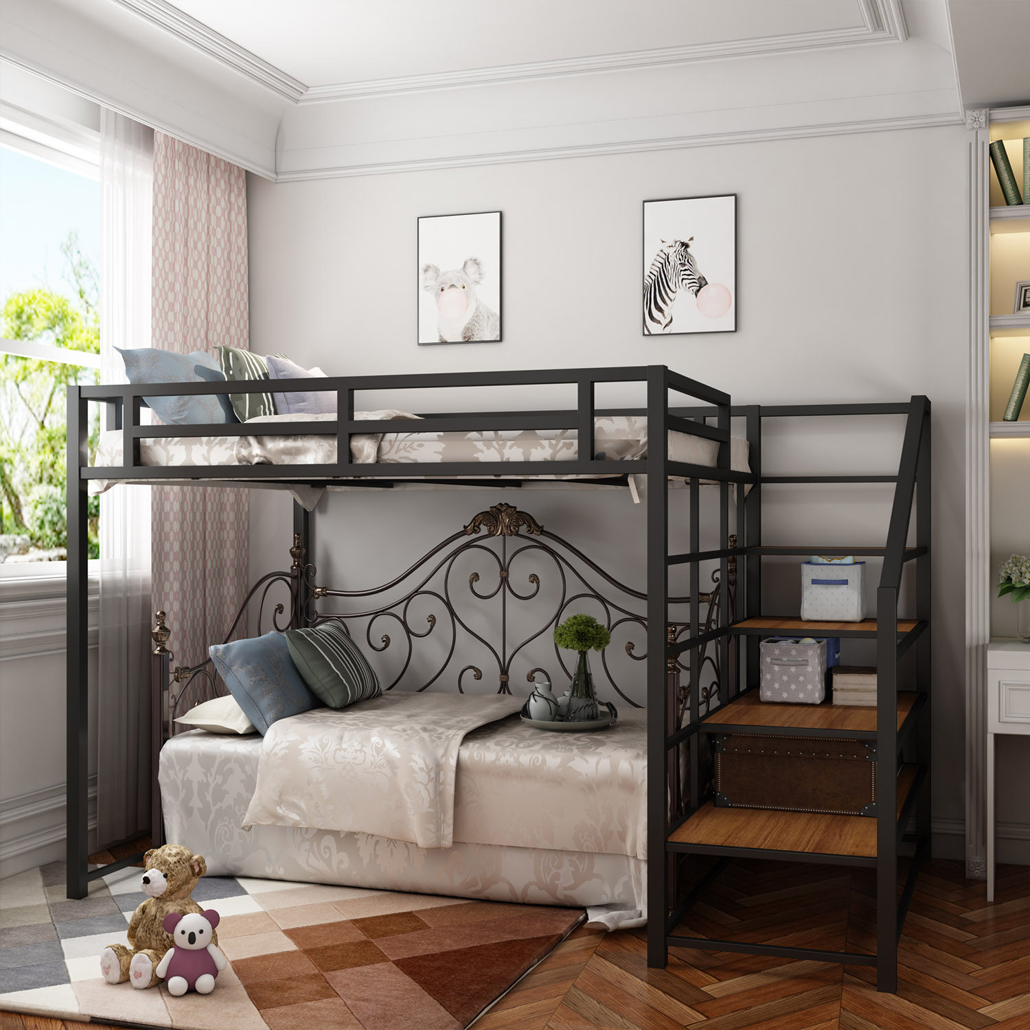 Nordic elevated bed double iron frame bed simple modern small apartment bunk bed multifunctional apartment attic iron bed