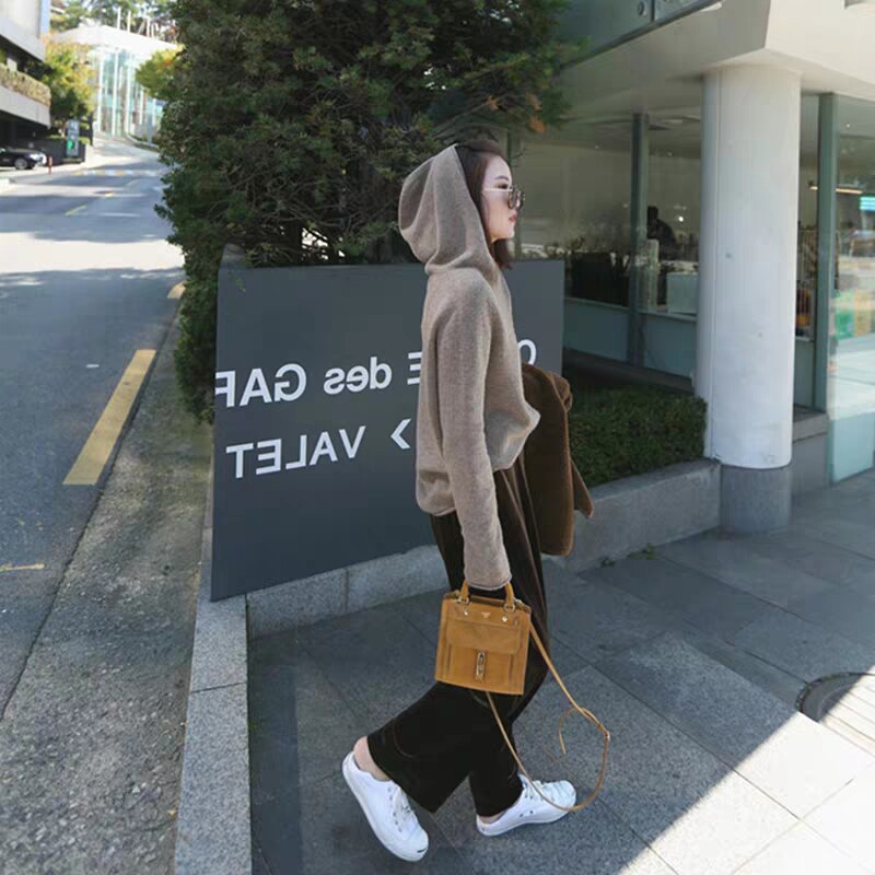2021 Autumn Dress New Women's Clothing Day Ensemble Retro LAZY WIND NOT EVEN CAP KNIT UNDERSHIRT SWEATER WOMEN'S BLOUSE EXTERNAL WEAR