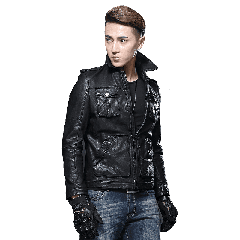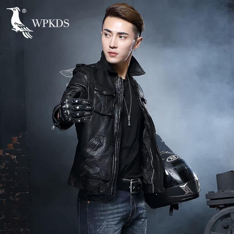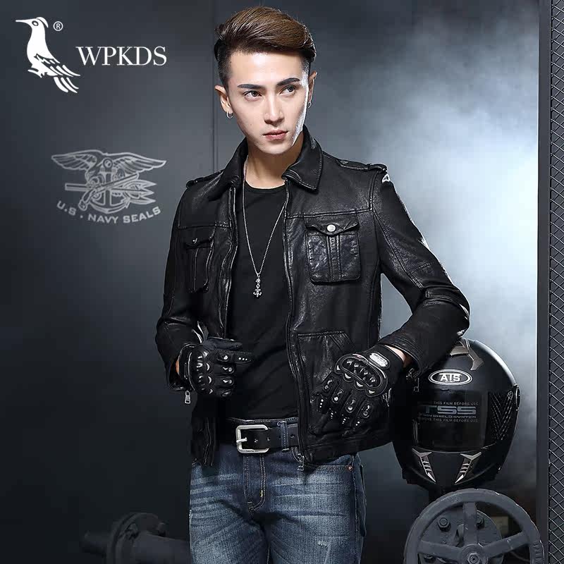 New Haining leather leather men Korean slim sheep jacket men's motorcycle Harley leather jacket handsome