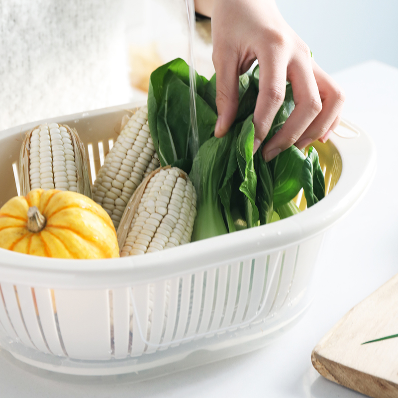 Double Layer With Lid Wash Vegetable Basket Kitchen Drain Basket Domestic Plastic Multifunction Fruit Pan Wash Vegetable Basin Transparent Fruit Basket