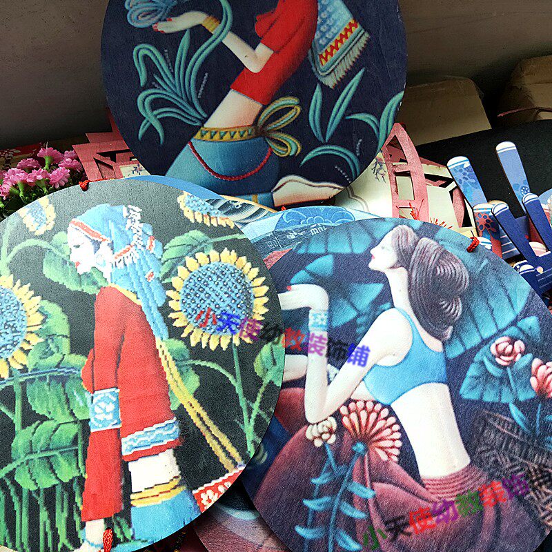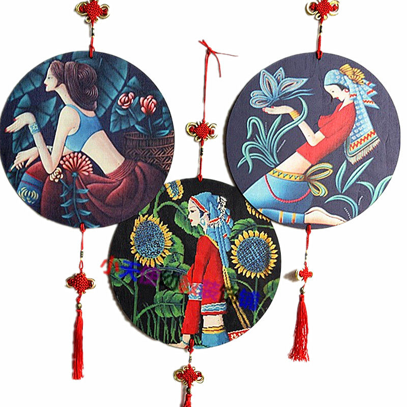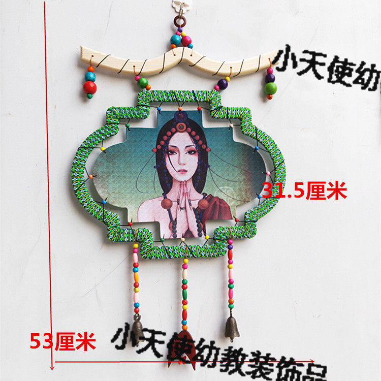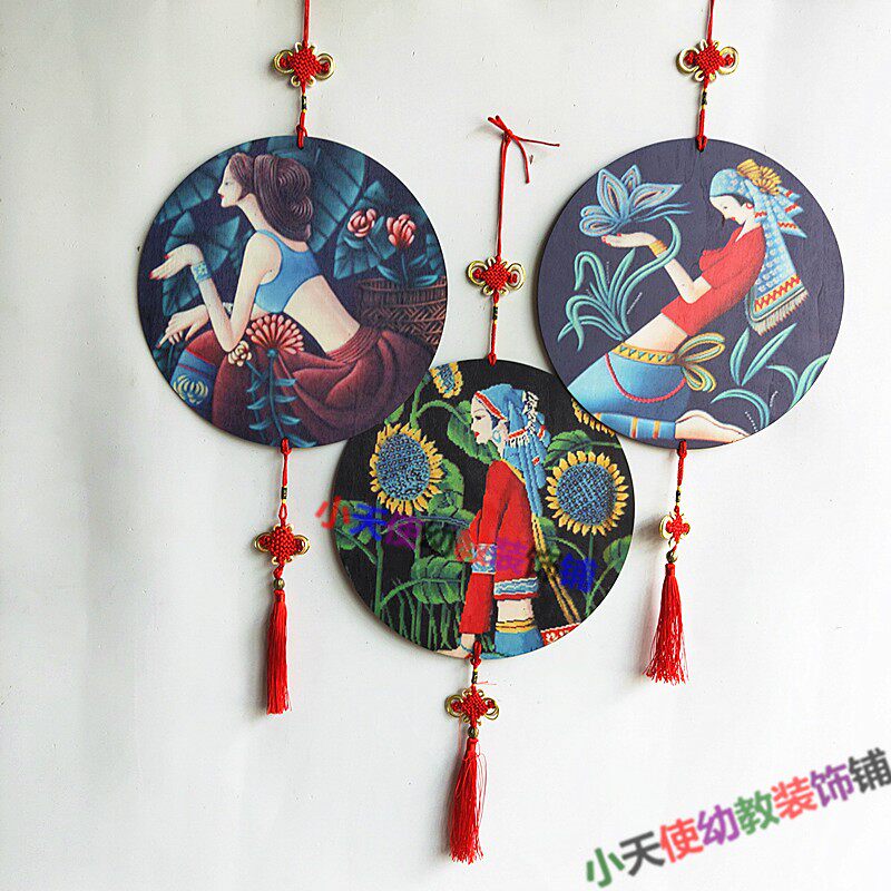 Kindergarten Chinese style hanging decoration wooden color printing ring creation ethnic customs character classroom decoration leisure farm hanging decoration