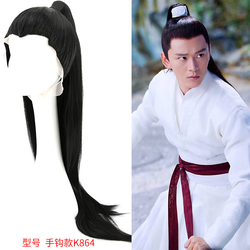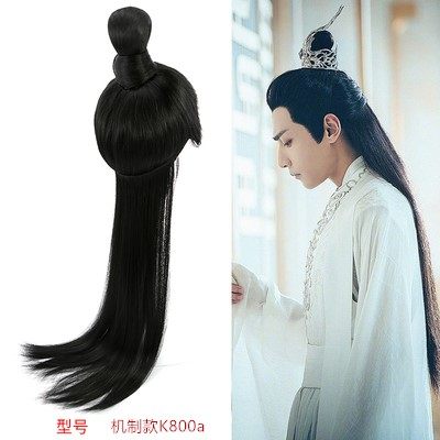 Xinyi ancient costume black long straight hair set fashion men's new whole wig chivalrous wig wig hand hook style full headgear