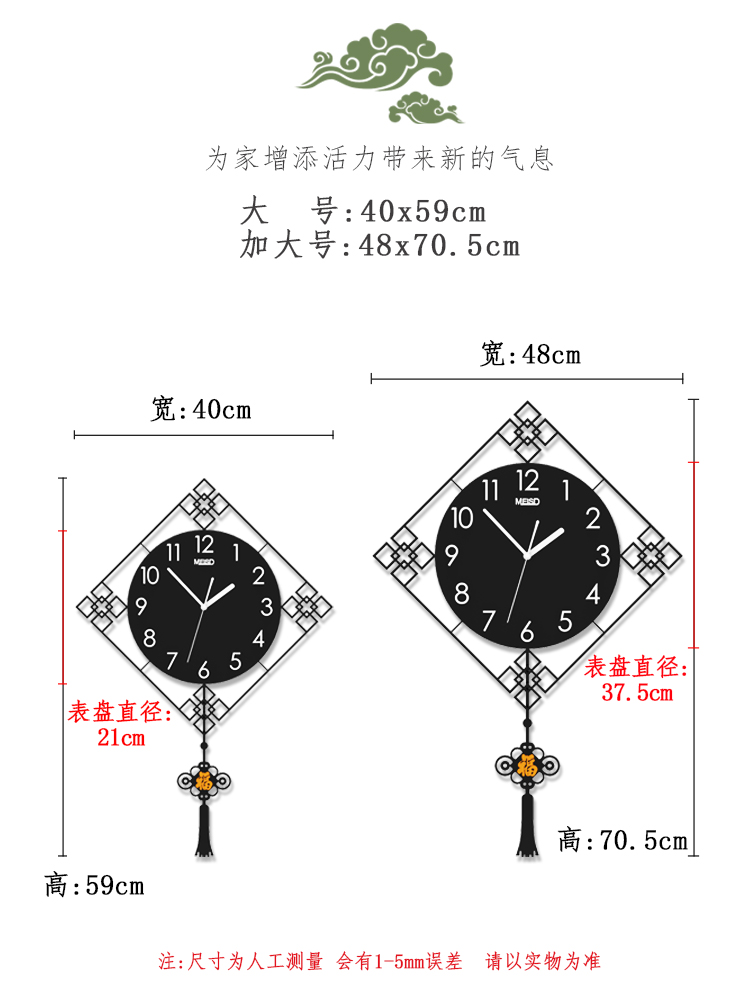 Chinese style minimalist swing clocks and watches Living room home Fashion decoration clock quartz clock personality creative hanging table