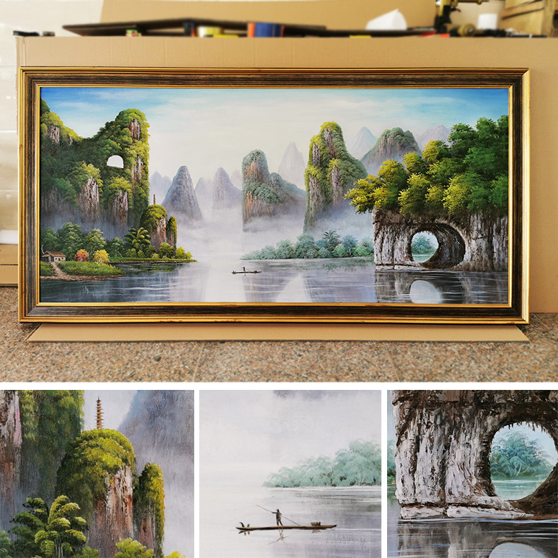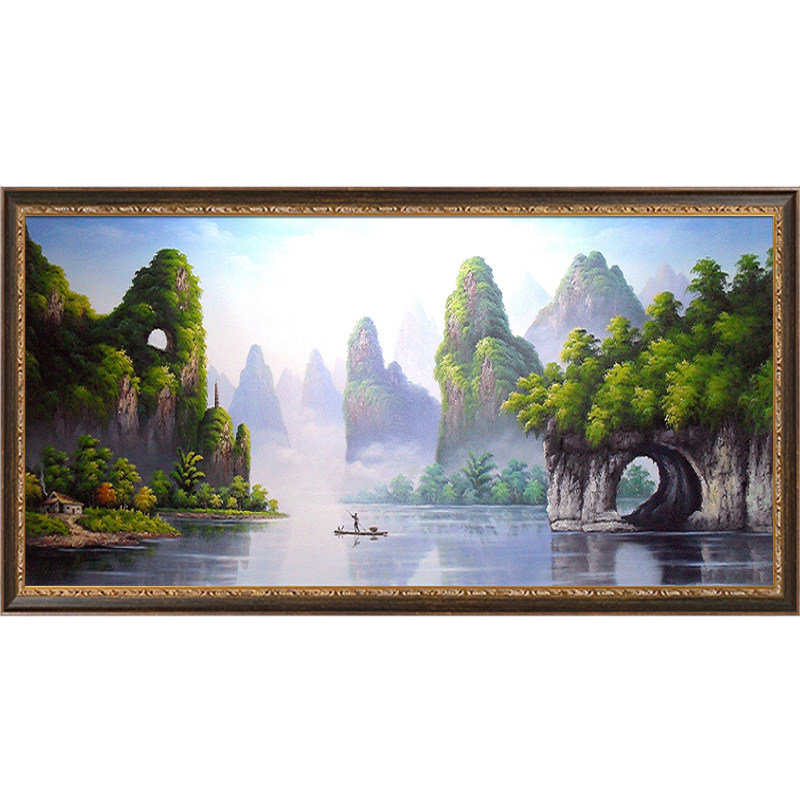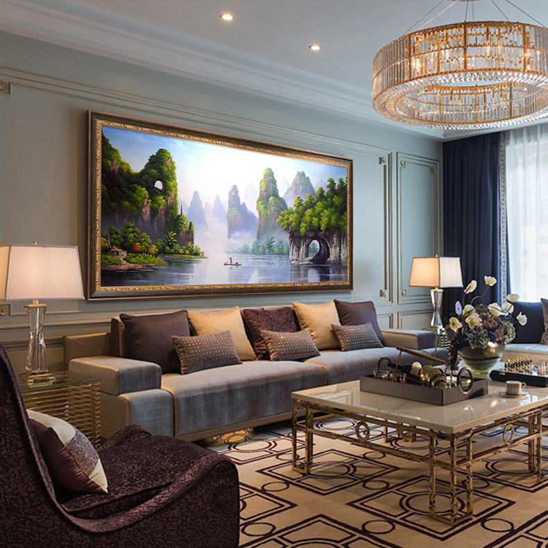 Hand-painted Oil Painting Aisle Book House Office Pure Hand Hang Painting of Guilin Mountain View Landscape Painting Modern Living Room Decoration Painting