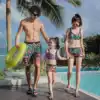 Two-piece belly cover swimsuit women's half sleeve conservative thin three-piece set 2021 parent-child model couple swimsuit men's beach pants