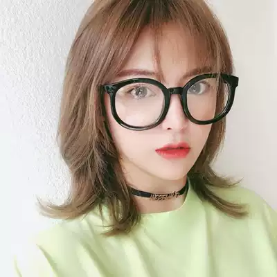 Black Hong Kong flavor literature and art plain anti blue light flat mirror big frame can be equipped with myopia ins Net Red Arrow glasses frame female