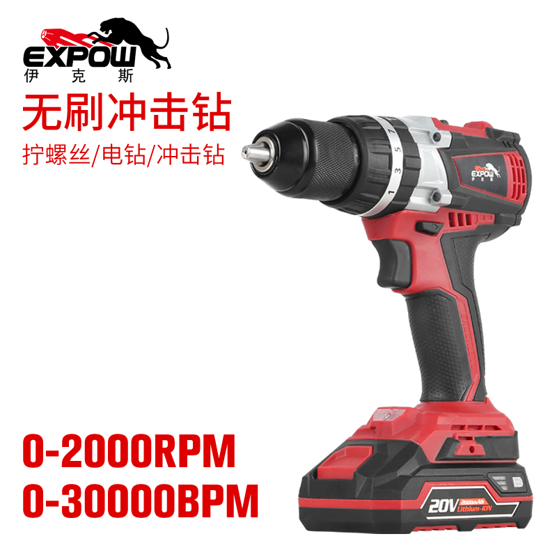 expo ikes 20V lithium electric brushless double speed shock drilling charging hand electric drill electric screw batch power tool-Taobao