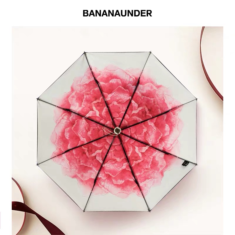 Banana lower glazed loho sunscreen umbrella female anti-UV sunshade double-deck clear rain and small black umbrella folded under the sun