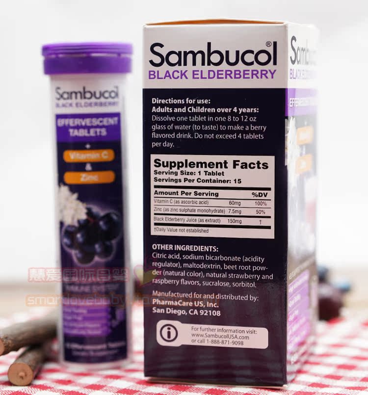 American Sambucol Black Bone Wood Sparkling Ingots No Sugar 4 Years Old Children Adult Resistance Immunity VC Zinc