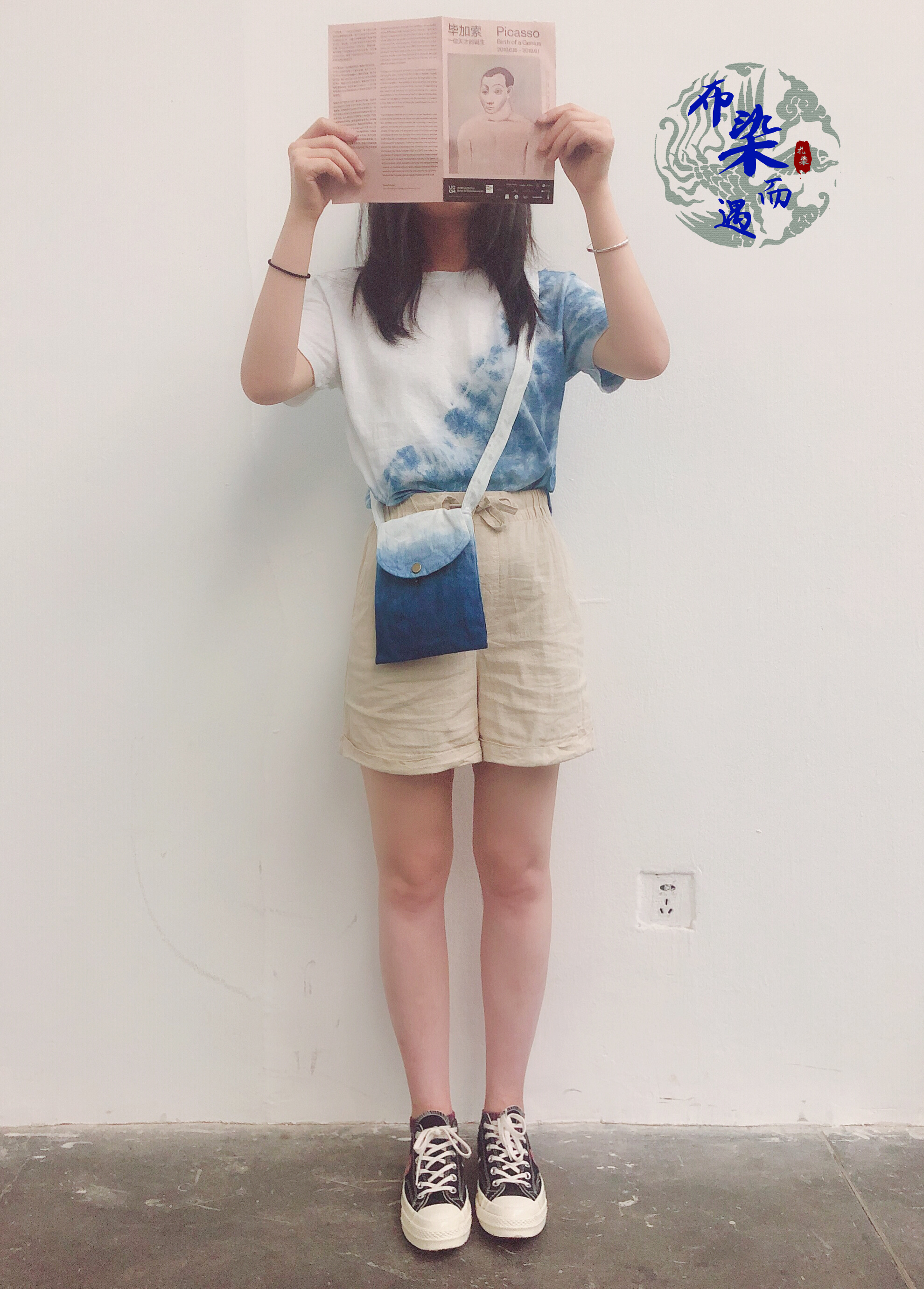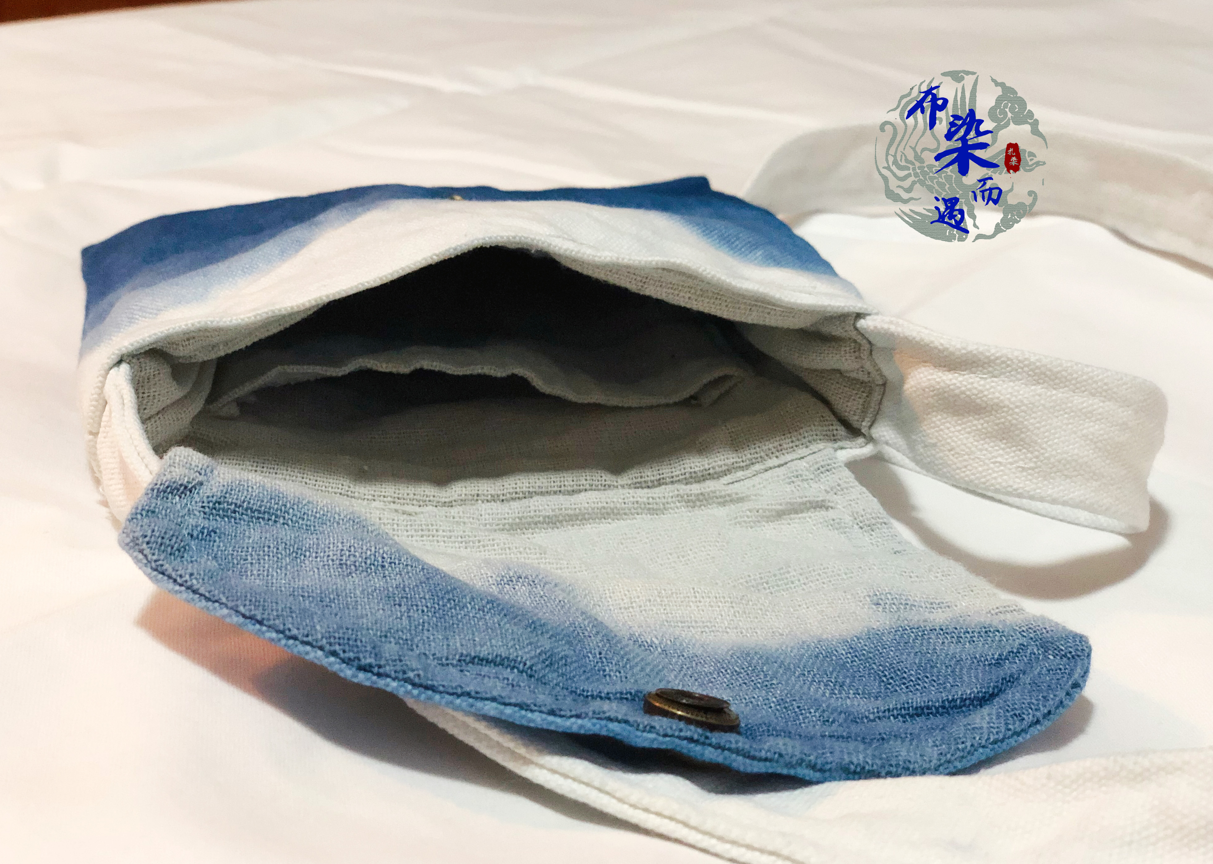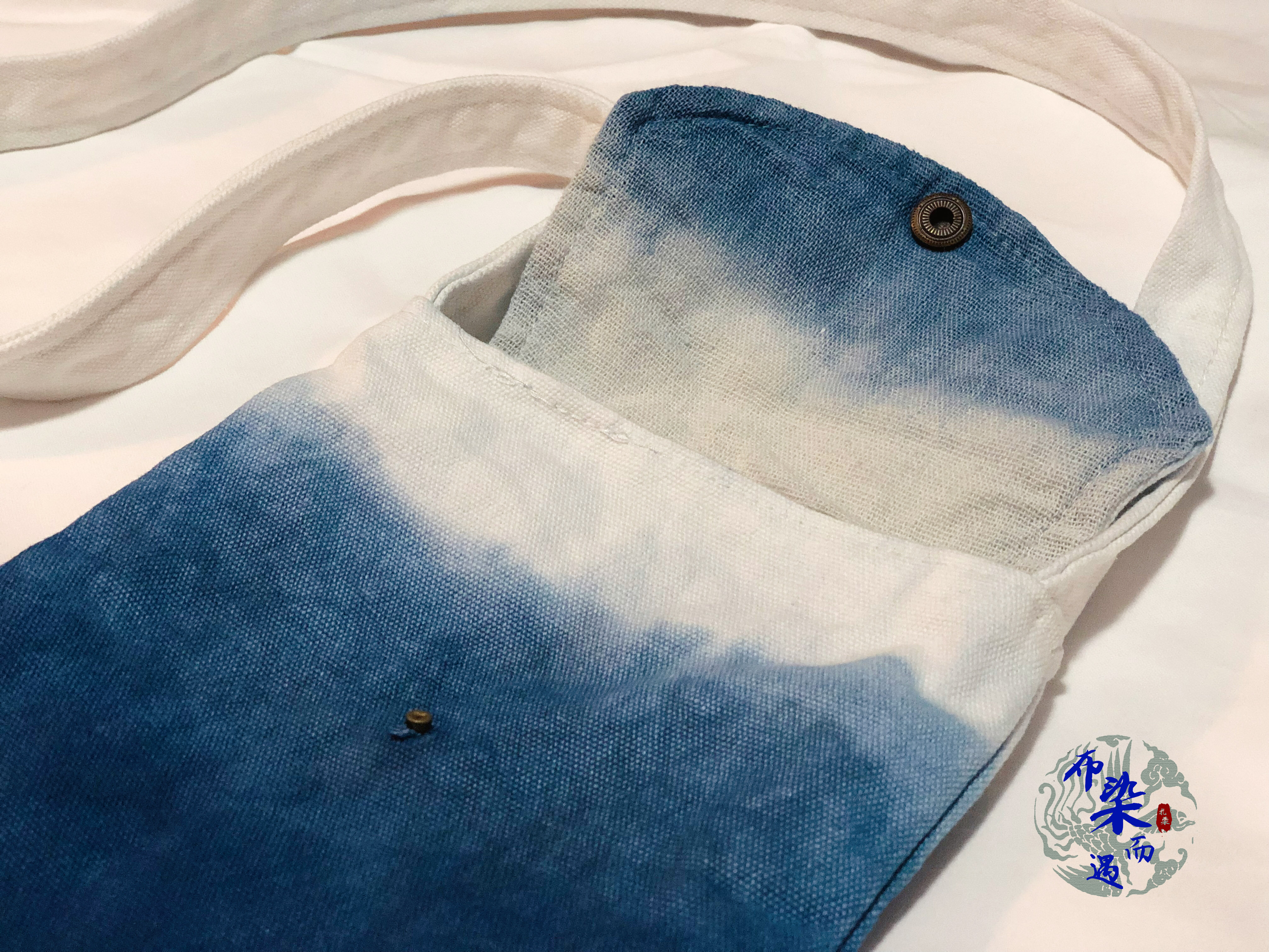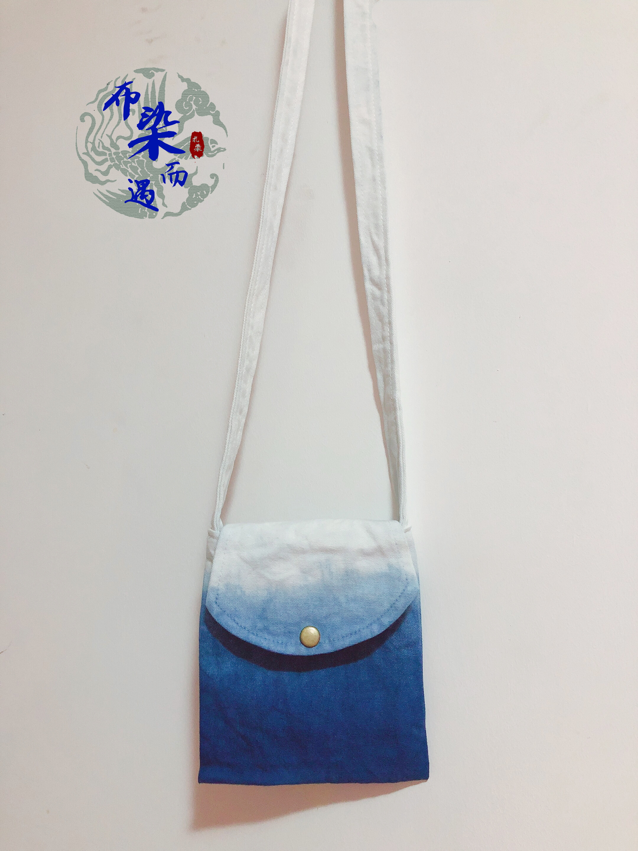 Cloth dyed and encountered handmade blue dyed grass tie-dyed oblique cross vertical section shoulder canvas bag DIY bag mobile phone coin purse