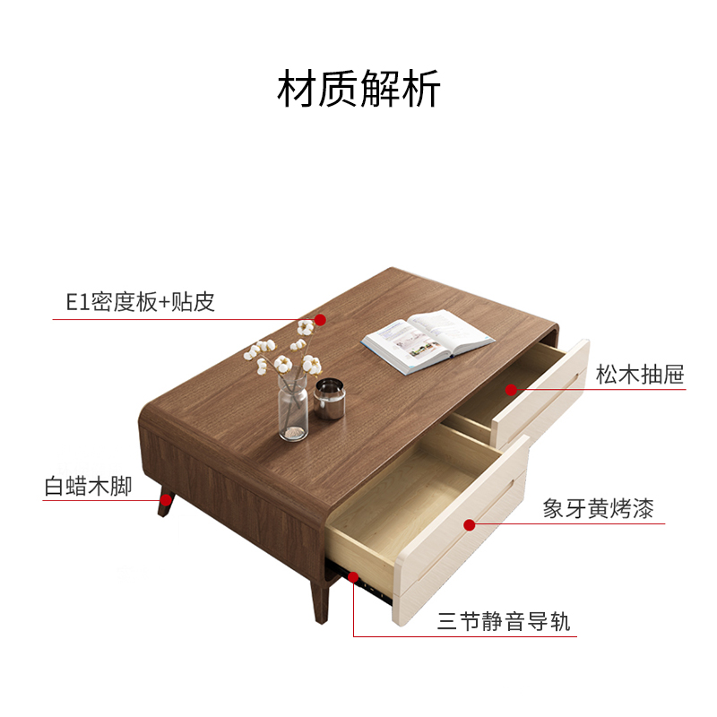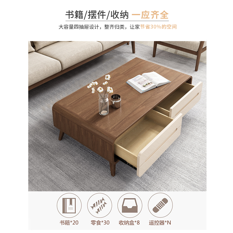 1 3m coffee table 2m TV cabinet Two-drawer cabinet 1 3m coffee table 2m TV cabinet walnut color-1300*700*400mm coffee table Walnut color TV cabinet-2