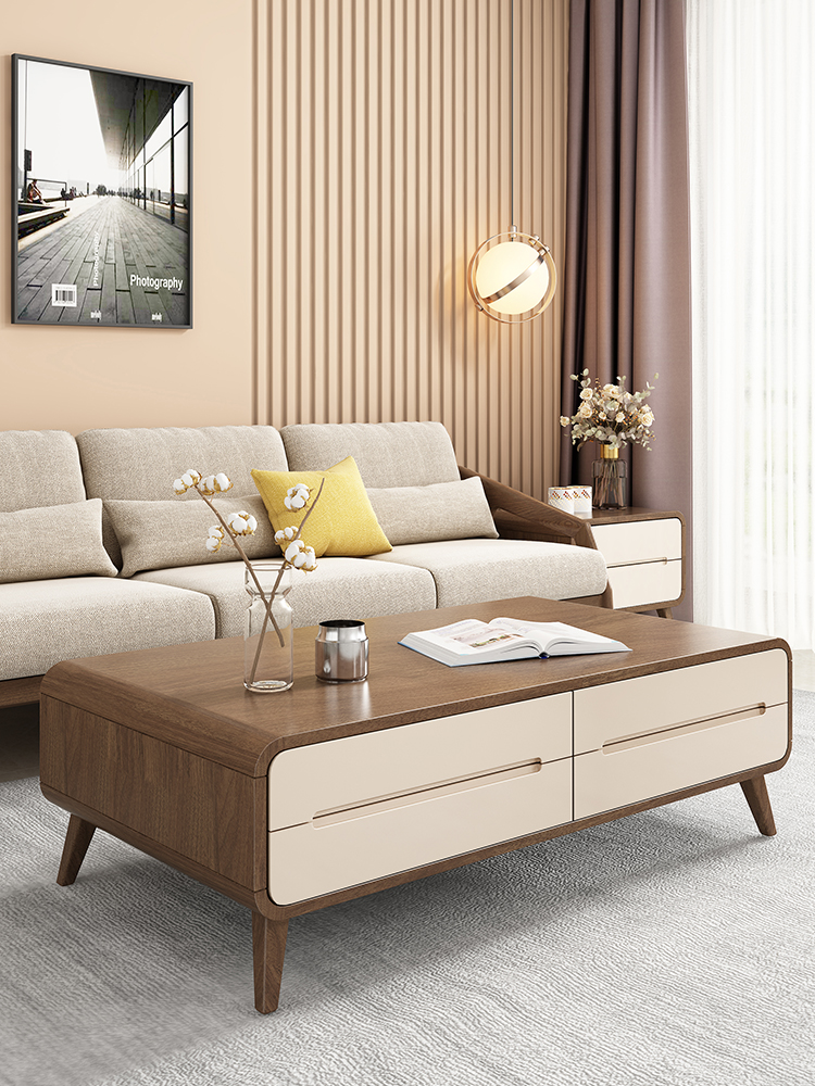 Solid wood coffee table TV cabinet combination Small apartment Nordic dining table Living room household tea table Simple modern light luxury furniture