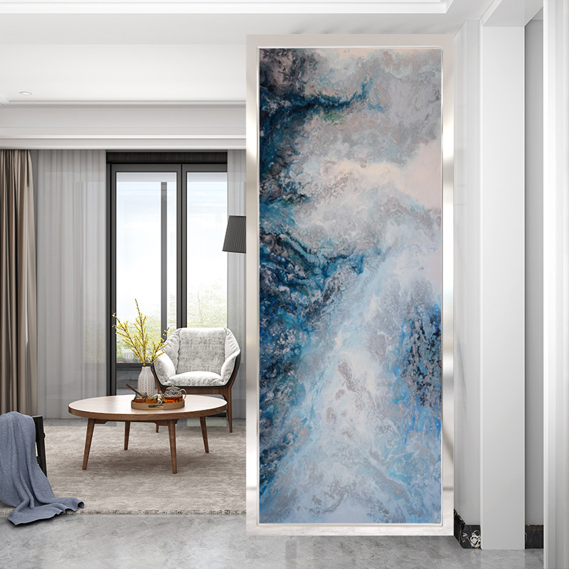 Art glass living room entrance screen partition background frosted sandwich glue double-sided abstract picture modern ink painting