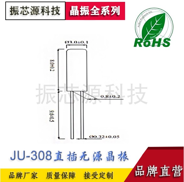 Factory direct sales 308 straight inserts crystal oscillator 20MHZ 20PF cylindrical quartz crystal resonator 10PPM3 * 8