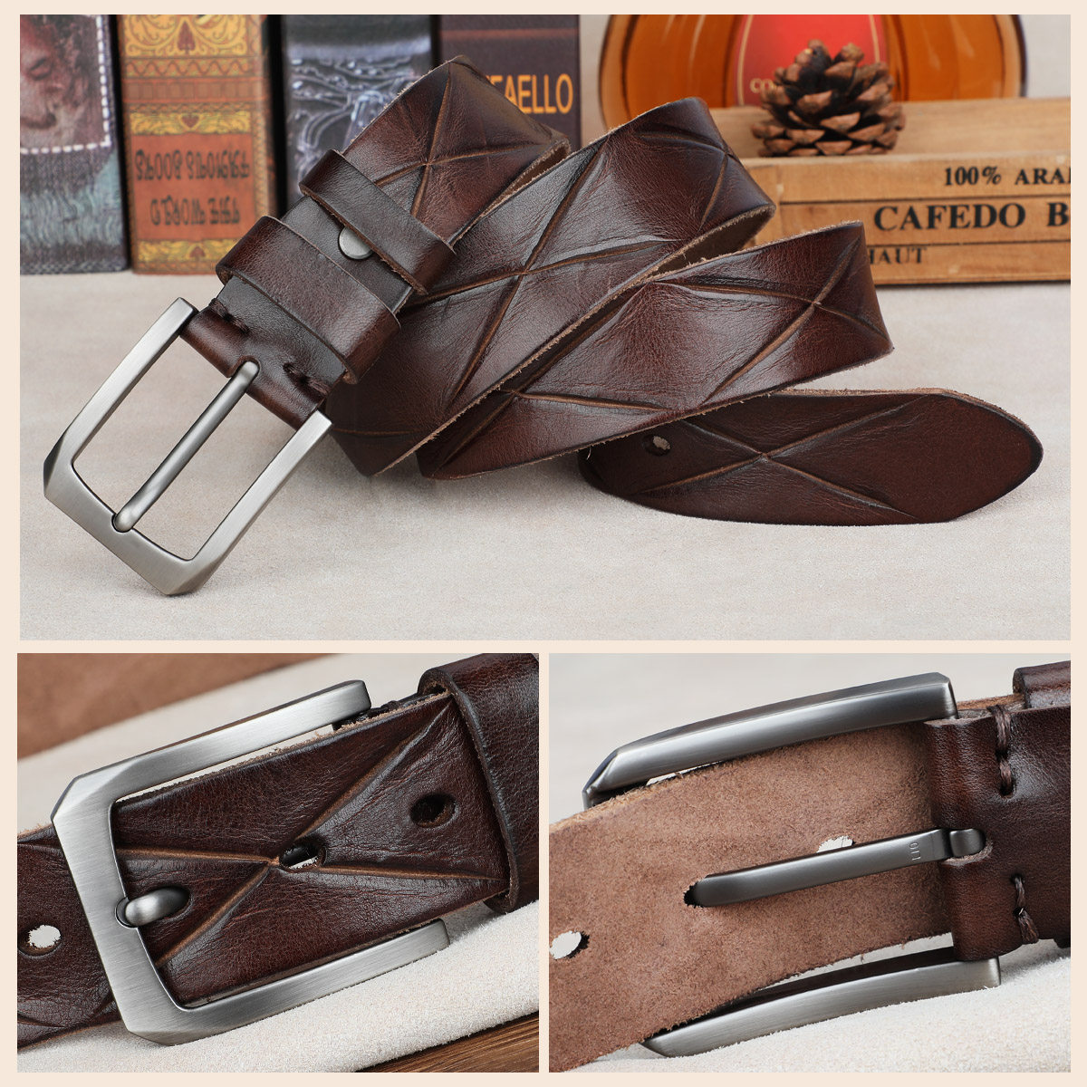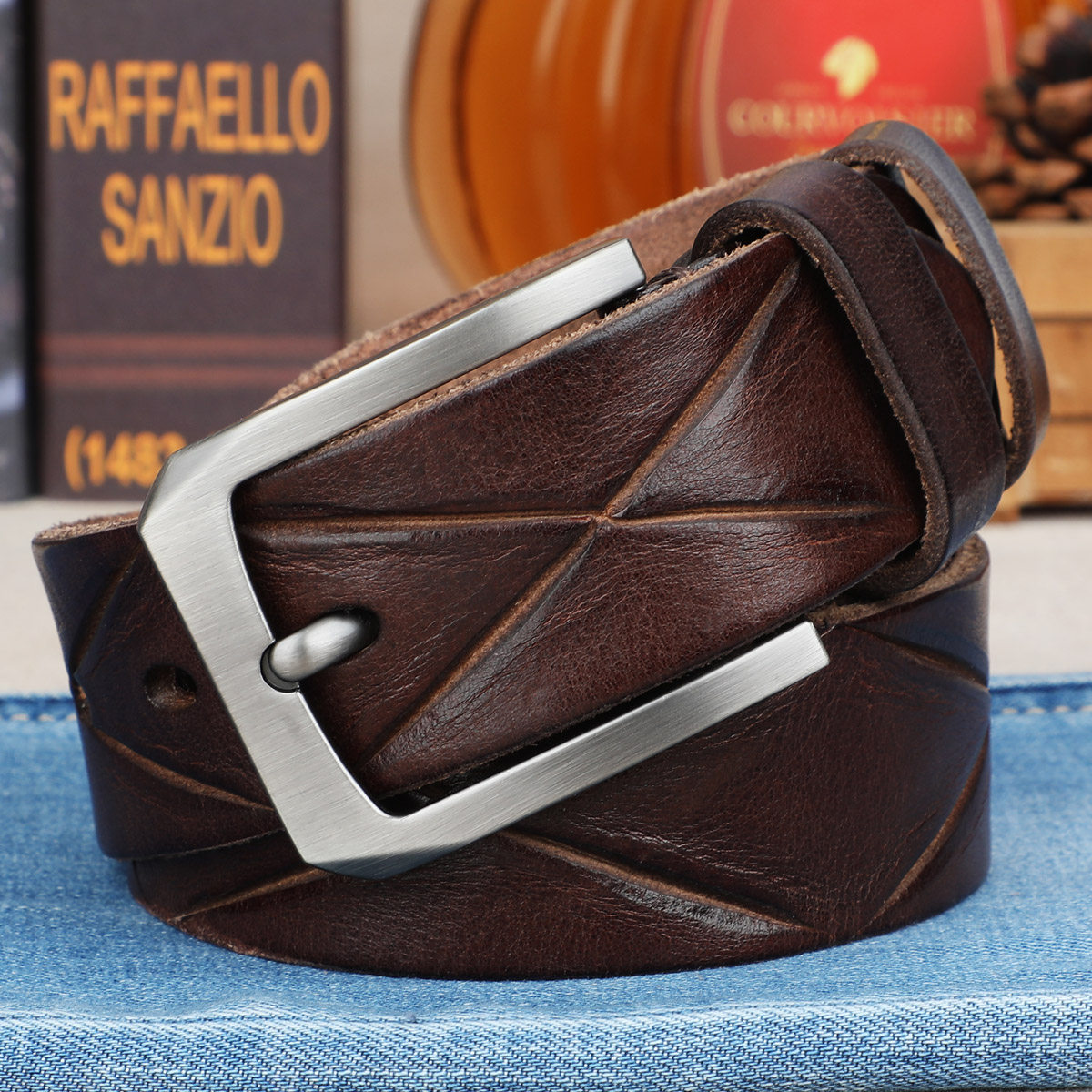 Belt Male Leather Needle Buckle Casual minimalist Young pants with head layer Bull Leather Men's Belt Bull Leather Pure X