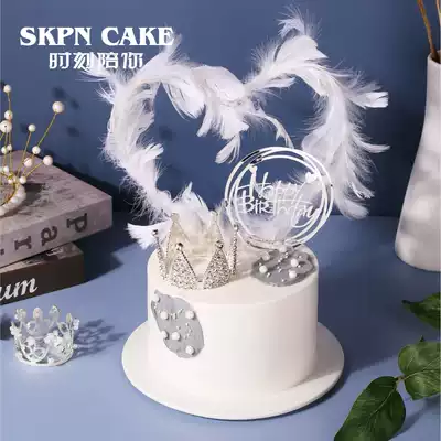 Creamy cream fresh mango strawberry plug-in sugar beads glowing love feather crown
