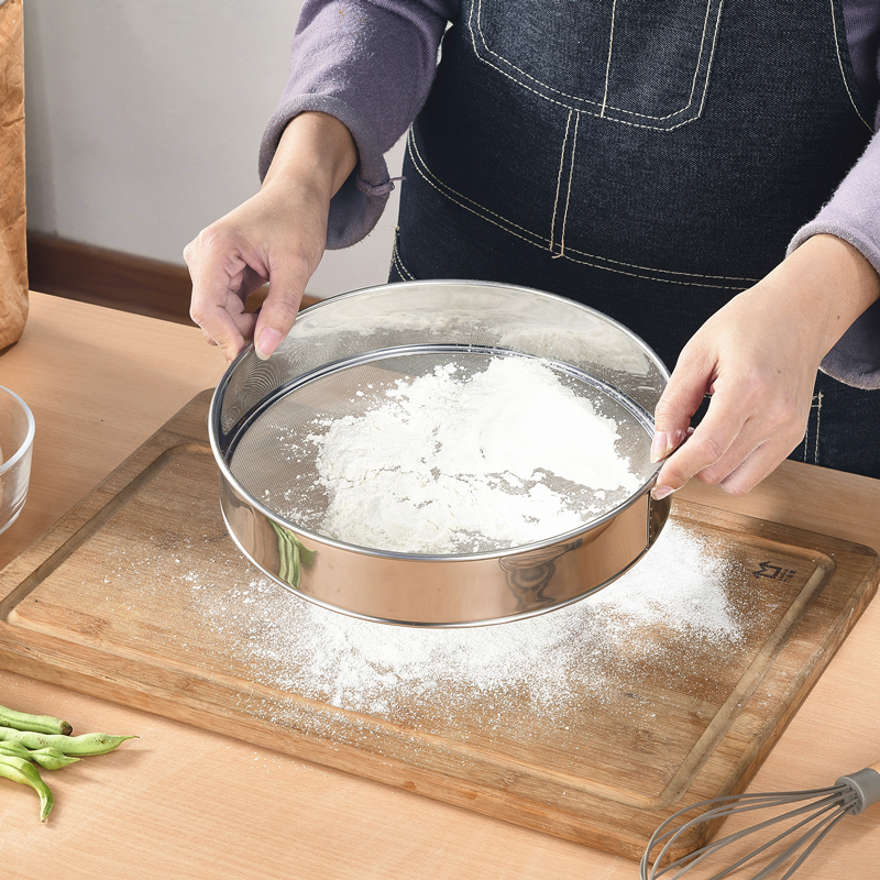 304 flour sieve thickened and encrypted stainless steel fine flour sieve powder sugar leakage 30 mesh traditional Chinese medicine sieve baking tool
