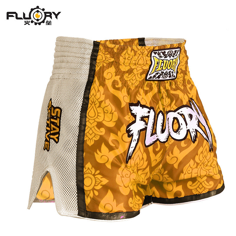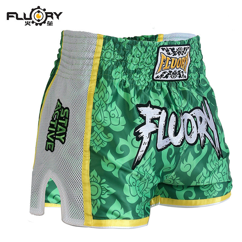 FLUORY Fire Fortress Muay Thai Shorts Sanda Fighting Fighting Training Competition Kids Adult Printed Boxing Pants 2019 New