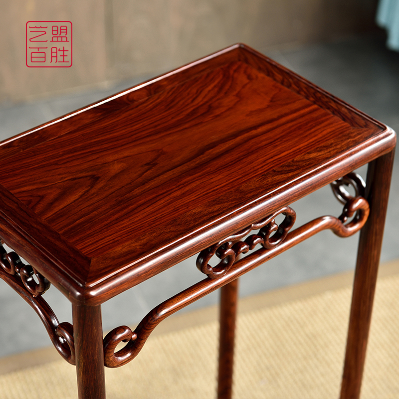 Art franchise Hundred Wins Micro Concave Yellow Sandalwood Red Wood Small Flower Shelf Living Room Bright Red Acid Branches Wood Square Floor Bonsai Shelves Small