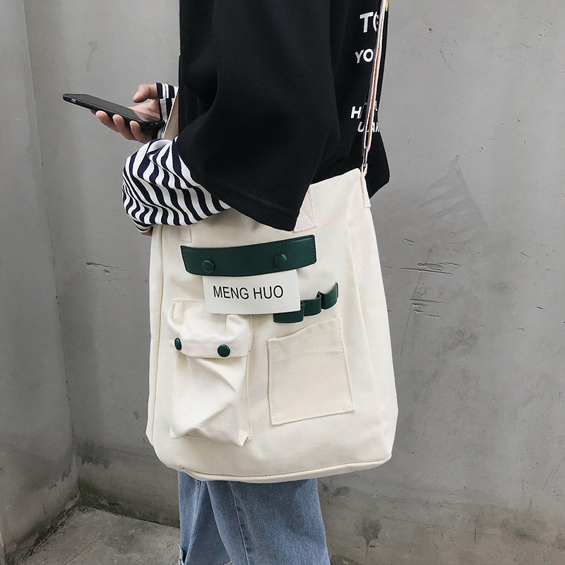 New Port Wind Fashion Single Shoulder Bag Men's Tide Fashion Tide Satchel Satchel Satchel Students High School Kids Multiple Pockets Single Shoulder Bag