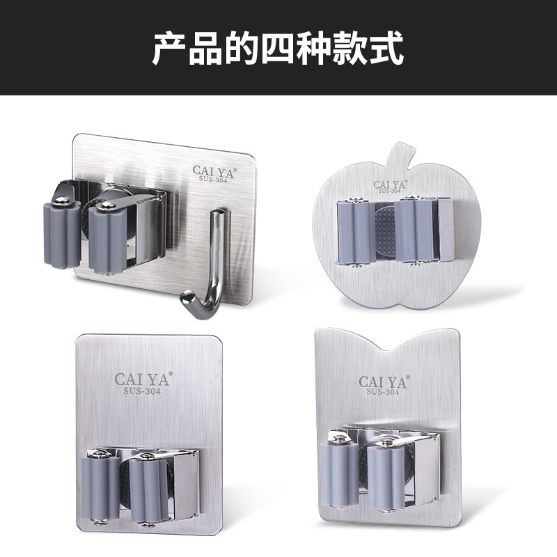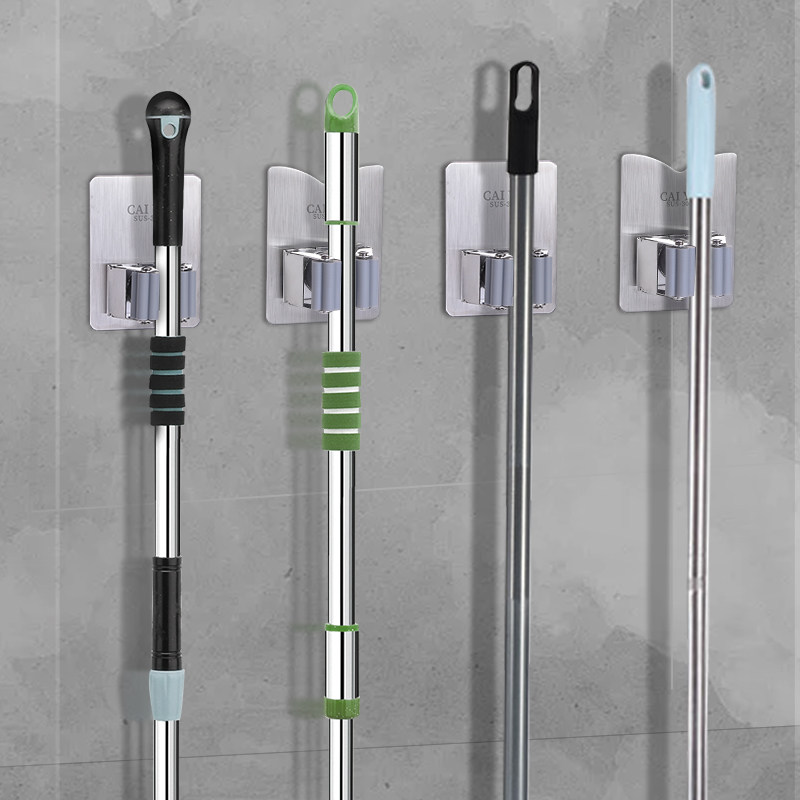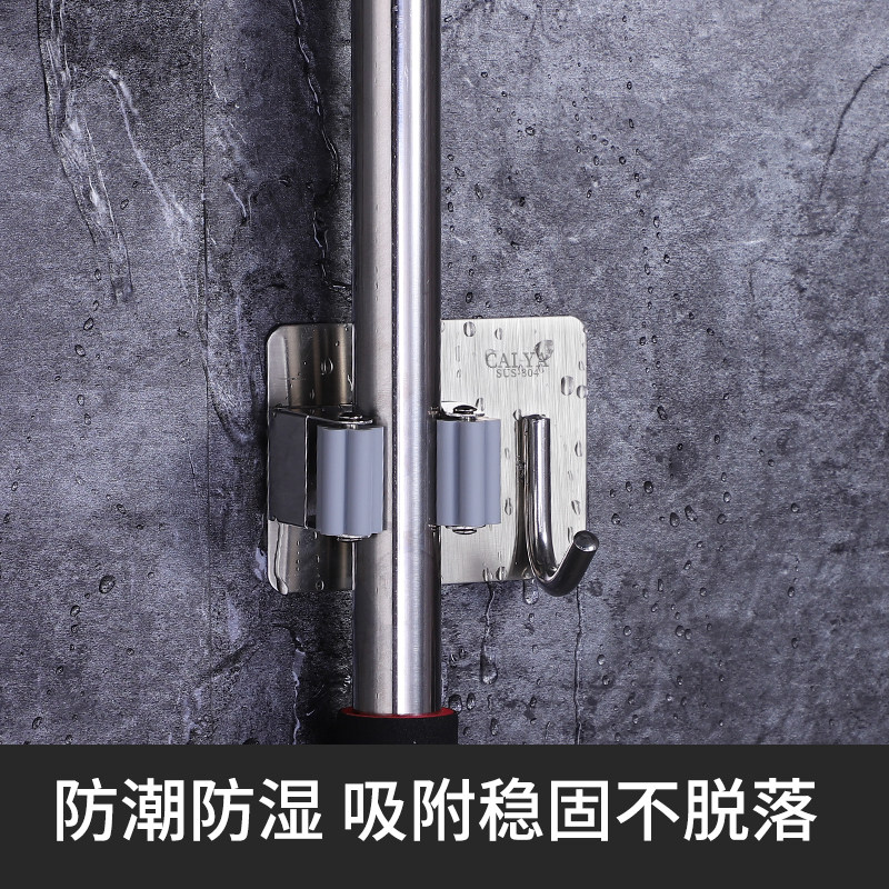 Mop hook non-perforated dressing room storage artifact stainless steel broom hanger strong fixed wall mop clip