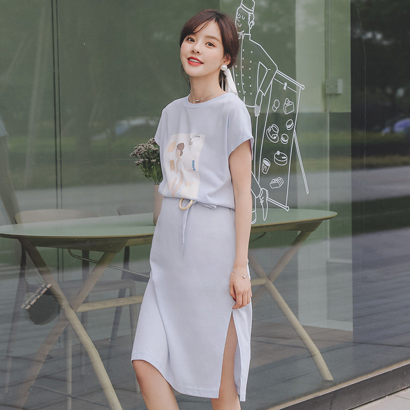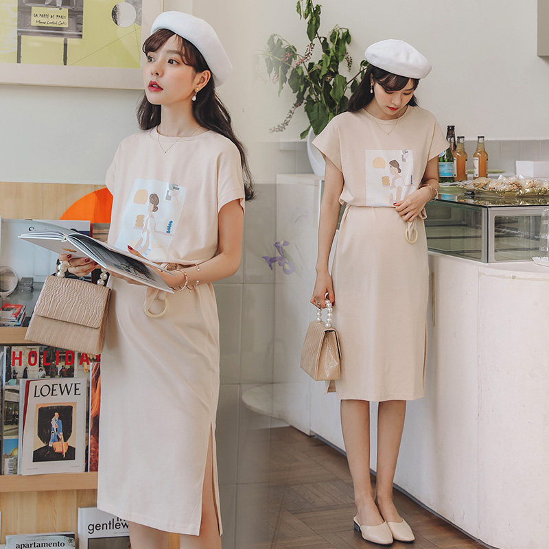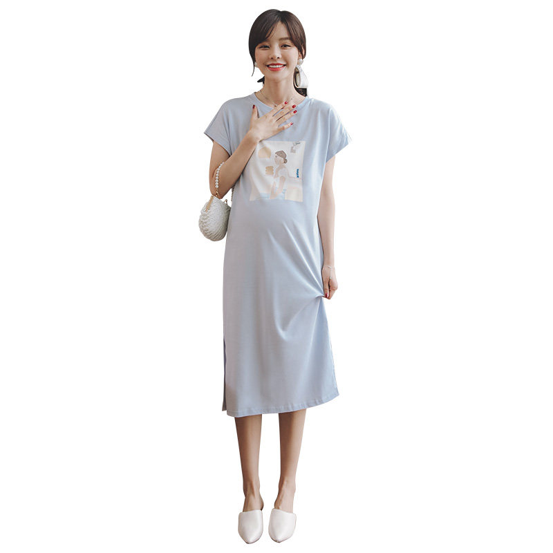 Miduli maternity dress Summer long version knee-high maternity mom fashion maternity dress Skirt Cotton t-shirt dress Summer dress